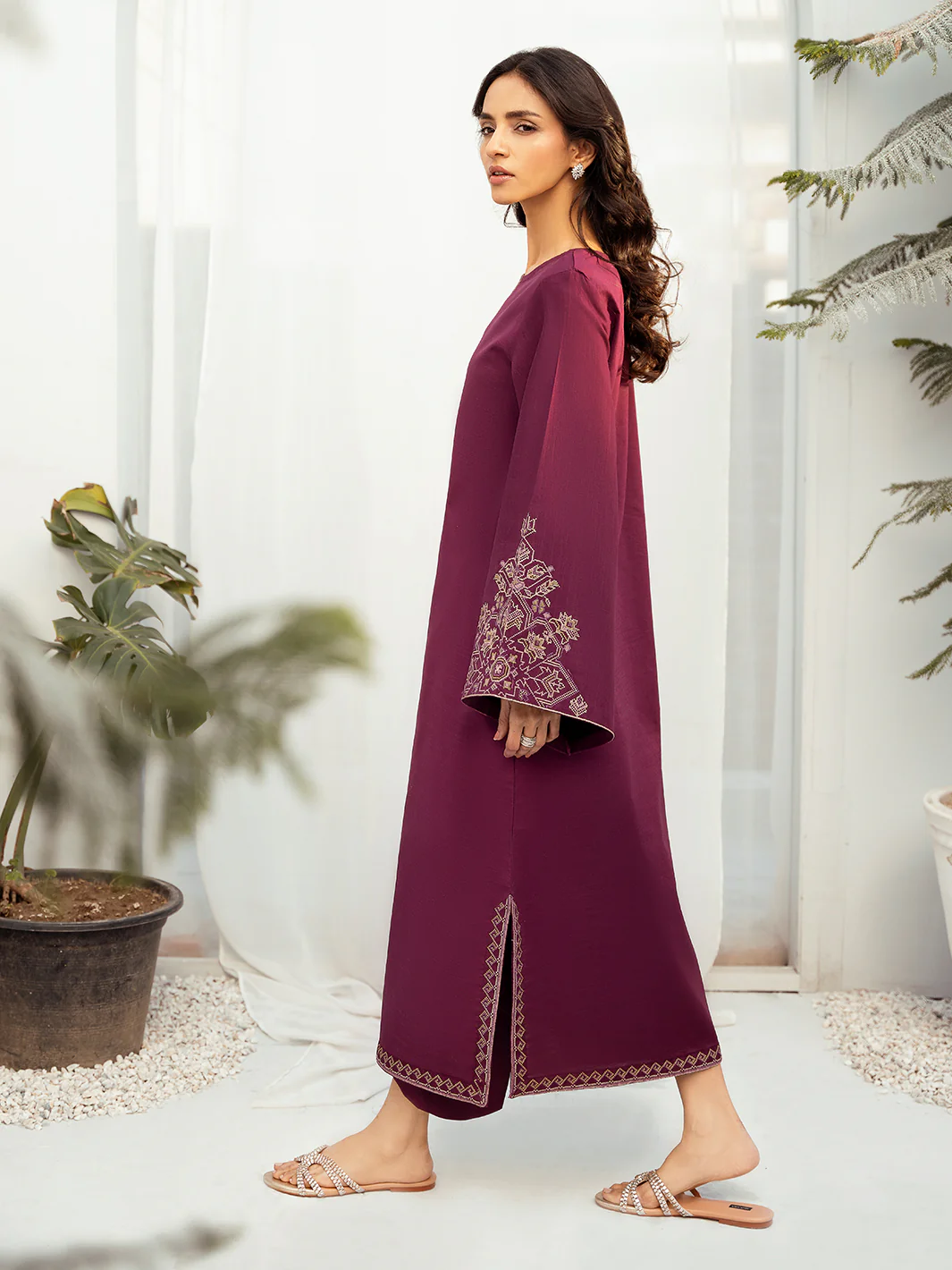 Discover the timeless beauty of Celesse, an exquisite dark moderate pink dress that embodies elegance and sophistication. The shirt, crafted from soft slub lawn fabric, is adorned with intricate cross-stitch embroidery on the front and sleeves, showcasing the perfect harmony of traditional craftsmanship and modern style. The embroidery’s fine detailing enhances the richness of the outfit, creating a visually captivating design that feels both intricate and refined. Paired with plain dyed cotton trousers, Celesse offers a complete and polished look, ensuring comfort and style throughout the day. The plum hue adds a touch of boldness and femininity, making this outfit a standout choice for celebrations, semi-formal gatherings, or festive events. Let Celesse be your go-to attire for moments when you want to leave a lasting impression with elegance and poise.