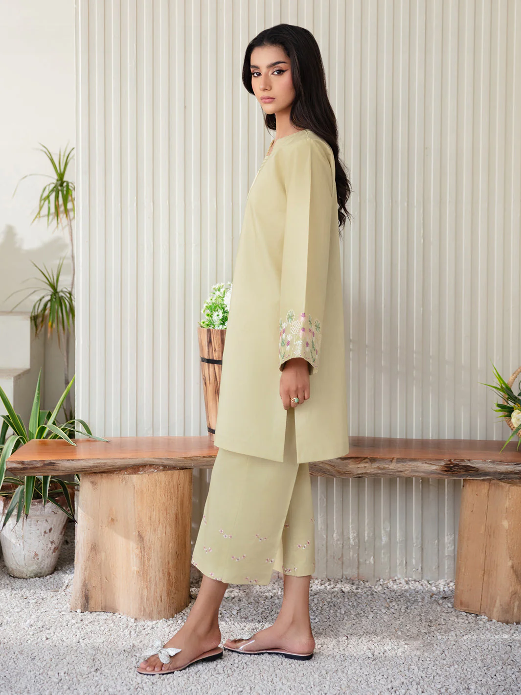 Step into a world of delicate sophistication with Eraza, an embroidered pistachio-colored kurta that embodies grace and refinement. The intricate embroidery detailing on the neckline, complemented by lace accents, adds a touch of understated luxury to this ensemble. The subtle yet striking color enhances its timeless appeal, making it an ideal choice for both daytime and evening wear.